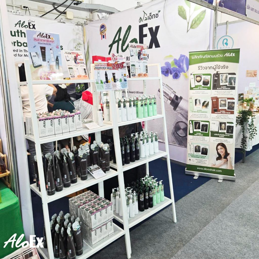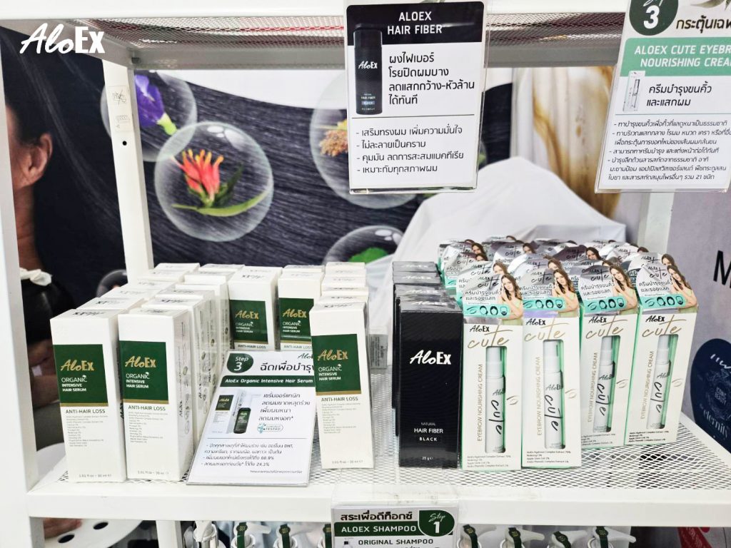 การมาเยี่ยมชมบูธ AloEx ไม่เพียงแค่ได้เลือกซื้อสินค้าในราคาคุ้มค่า แต่ยังได้ทำความรู้จักวิธีดูแลเส้นผมที่เหมาะกับตัวเองมากขึ้นอีกด้วย